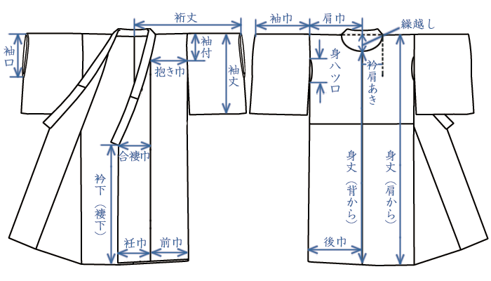 - Body Length (身丈): Total length from center back seam (excluding collar)
